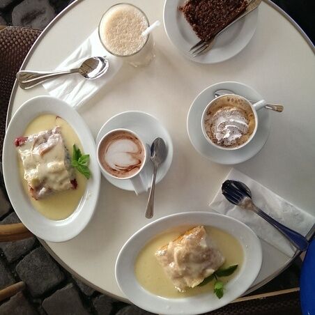 We were both walking rather like cowboys and our comfortable riding clothes now looked out of places in this oasis of urban sophistication. We felt (and looked) very much like country bumpkins entering this elegant city of Baroque and Renaissance facades. The bitter sweet smell of ground coffee and freshly cooked pastries danced enticingly around my nose.