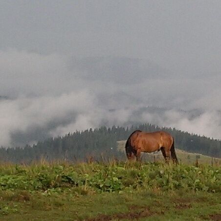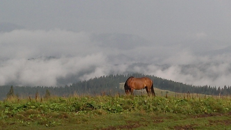 Their daily routine is a hard one of early morning milking, evening milking and in between producing salty and bitter Brinza cheese. If the weather in the valleys is hot and humid, high up in the mountains, you feel very exposed to the elements. It is cooler up here and the skies crackle and rumble with thunder, lightening. Thick fog descends rapidly and is burnt away equally rapidly by the fierce sun. Nights are cold. Washing is in cold mountains streams and there is a very strong feeling that you are sharing this environment with the deer, bears and (luckily for us) timid wolves that inhabit the surrounding woodland and although you sometimes catch a fleeting glance of them, they are probably watching you all the time.