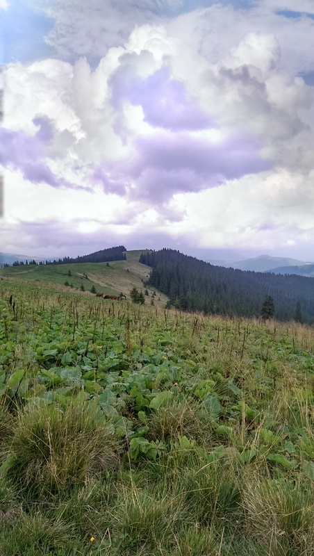 The mountains are full of blueberries, bilberries and the woods are full of such a variety of mushrooms that Robert, Slavik, Andriy and I collected several bagfuls in an hour. Luckily, Slavik was on hand to throw away the toadstools I had proudly collected before Maria served the best of the mushrooms in freshly skimmed cream and friend onion on a steaming pot of Mamaliga (Ukrainian Polenta cooked in cream). Far from town, we tuck into steaming plates of fresh yeast pancakes, painted with melted honey served with the bluest and blackest of blueberries mixed cold with sugar and the freshest of sour cream, "vareniki" stuffed with meat and served in fresh melted butter. All good food for the mountains rides, such as the ride to a far off watch-tower perched among swirling winds and constructed long ago by the Austo-Hungarians to keep an eye on their Eastern borders.