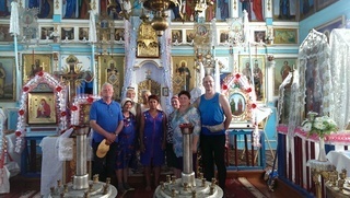 While riding through a village on the way to Kremenets, we stopped to chat to a group of ladies busily painting their local church for a forthcoming religious festival. Surrounded by fields of sweetcorn, oats and wheat, these ladies were determined that their 250-year old church would be looking good for next month's festival. They were keen to know who we we are, why we are travelling through their region and whether between Robert, Slava, Andriy and I, there were any bachelors who could be tempted to stay in the village to make up the numbers.